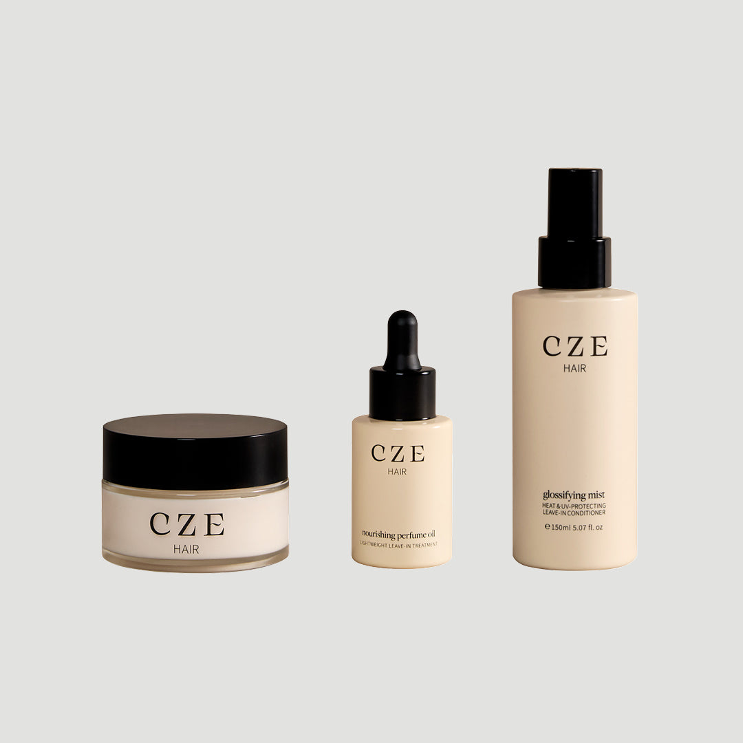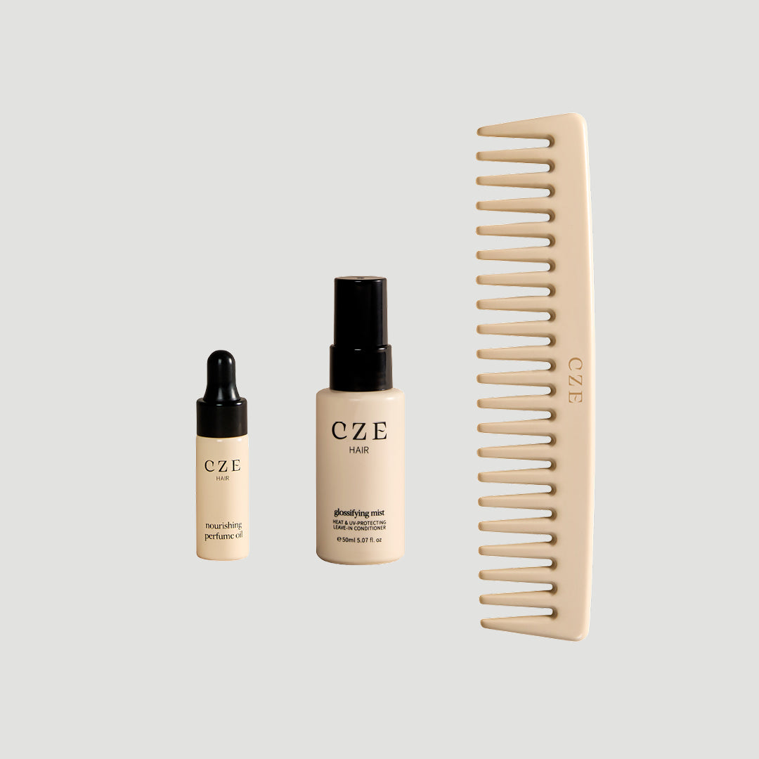 Travel-ready CZE minis to hydrate, smooth, and refresh hair.